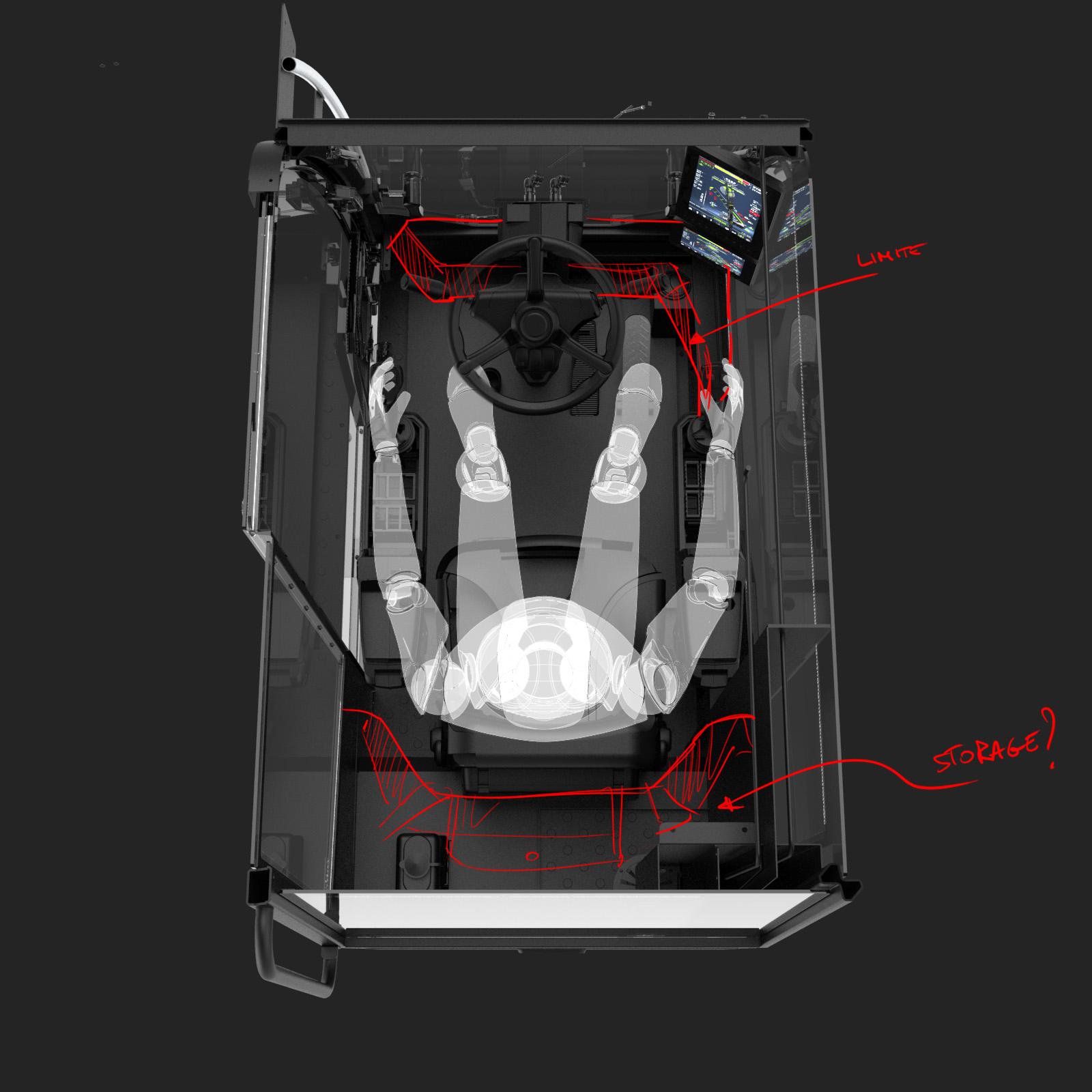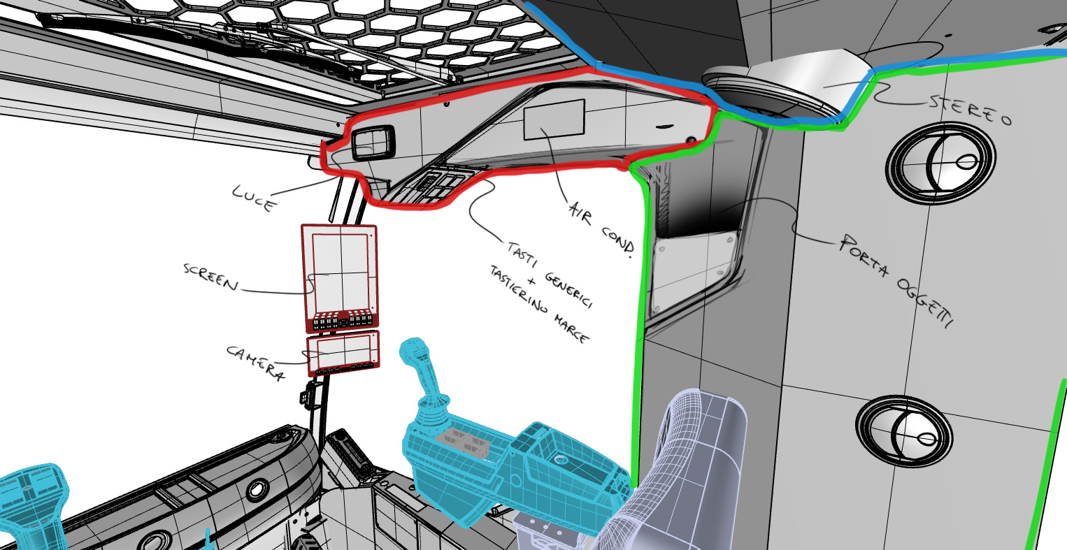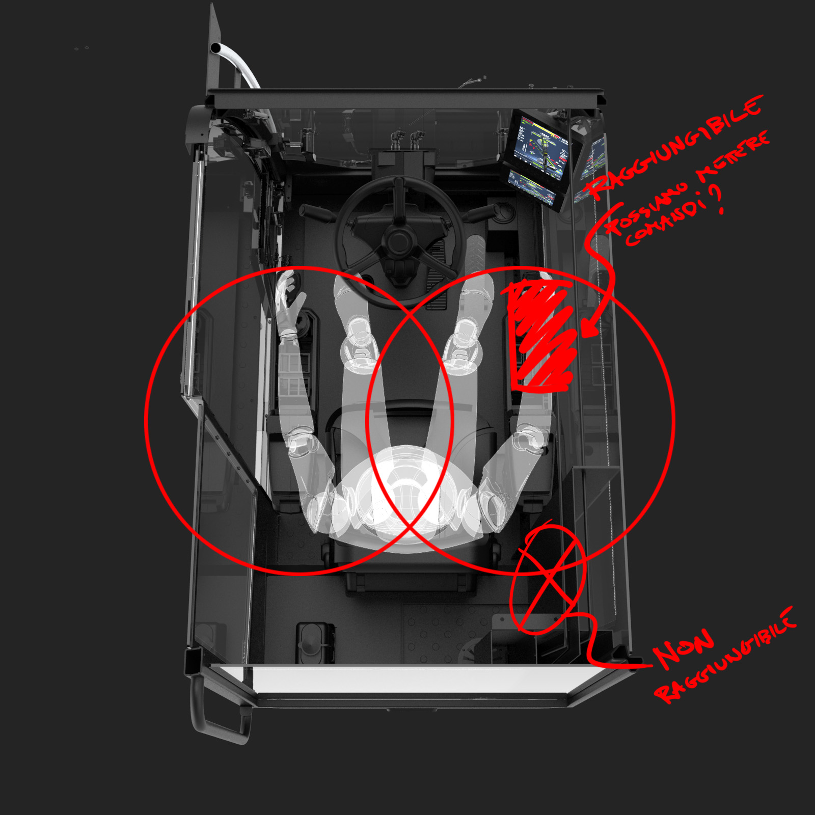 For interior design projects, my approach involves a comprehensive study of the environment and the optimization of buttons, handles, and levers that the operator interacts with. By establishing a hierarchy of priorities, each component is positioned in the most efficient and ergonomic location.